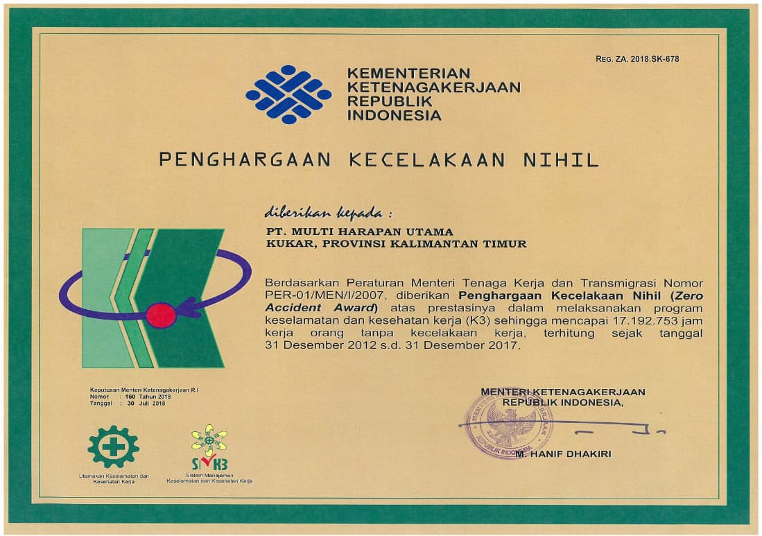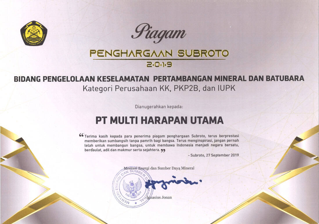 Pengelolaan Keselamatan Pertambahan Mineral dan Batubara kepada PT Multi Harapan Utama